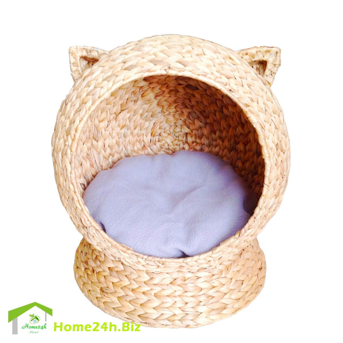 Water Hyacinth Natural Basket of Cat – Wicker Handmade Cat House